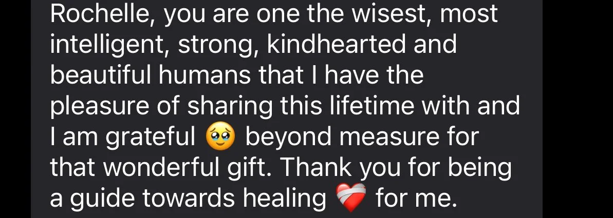 My sessions with Rochelle helped me to heal various aspects of my relationship with my mother. I was able to see the causality behind certain events and come to a compassionate understanding with a state of peace and calmness in my heart. She created a space for me to feel safe enough to express myself, free from any judgment. There were moments when I did begin to feel afraid as I moved through years of pain. She literally held my hand through the process as though to say, “You are not alone. I am here for you.” I have walked away with added softness, not hardened by the outside world and collective chaos. I felt empowered, much more relaxed and happy. Rochelle provides people with an opportunity for incredible healing and great adventure. Words cannot express the magnitude of gratitude and appreciation I have for Rochelle. Her gift of generosity, compassion and creativity is a blessing to the world and everyone she meets.